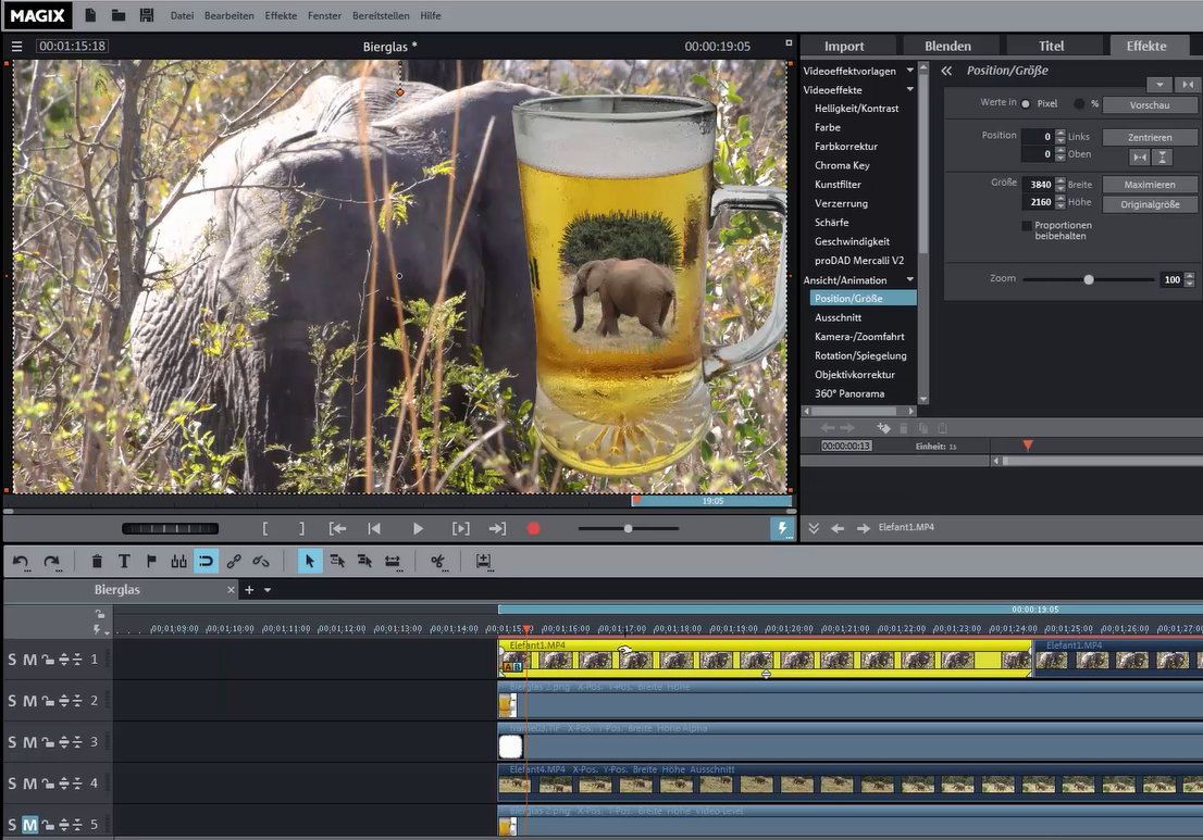 Der Inhalt der Lernkurses geht über die vielfältigen Effekt- und Verarbeitungsmöglichkeiten von Hochkant-Aufnahmen (aufgenommen mit einem Smartphone) im MAGIX-Filmprojekt. Jeder hat sicher schon mal hochkant gefilmt und fragt sich dann, wie baue ich das elegant in mein Videoprojekt ein. Es geht auch um spannende Effektgestaltungsmöglichkeiten und Techniken in MAGIX Video deluxe, wie die Szenenerkennung, die Einzelbildaufnahme, der Erstellung einer 6x-Splitt mit Ein- und Ausblendung, eine 4x-Splitt mit animierten Hintergrund, um kombinierte Farb – Schwarz/Weiss – Effekte im Video/Foto, Geschwindigkeitssteuerungen (Timelapse) in Kombination mit einem Blur-Effekt, dynamische Zeitlupen und wie man Jumpcuts erstellen kann. Auch das exakte Platzieren eines Videos in einem TimeSquare-Bild (in einem Videopanel), via 3D Verformungseffekt ist Thema sowie BildinBild-Effekte mit Maske und Transparenzen (Alpha-Keying) u.a. die Einbindung/Positionierung eines Videos in einem Bierglas, die Objektivkorrektur in der Praxis, die 360Grad-Videobearbeitung im Gear 360 ActionDirector und MAGIX 2016 sowie, die Ertsellung eines Sincity Effektes – selektive Colorierung mit Keyframes.