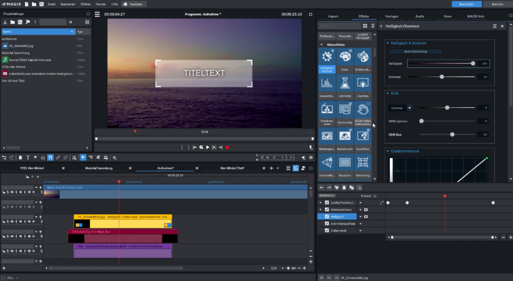 Ein starker Titel entscheidet oft über den ersten Eindruck – und genau hier setzen wir an. In diesem Praxis-Workshop arbeiten Sie mit unserer selbsterstellten Titel-Vorlage „4-Winkel-Titel“, einem exklusiven Convenience Project aus dem Anlagen-Ordner des MAGIX Lernkurs-Volumes 25, das Ihrem Filmprojekt sofort einen modernen und individuellen Look verleiht.