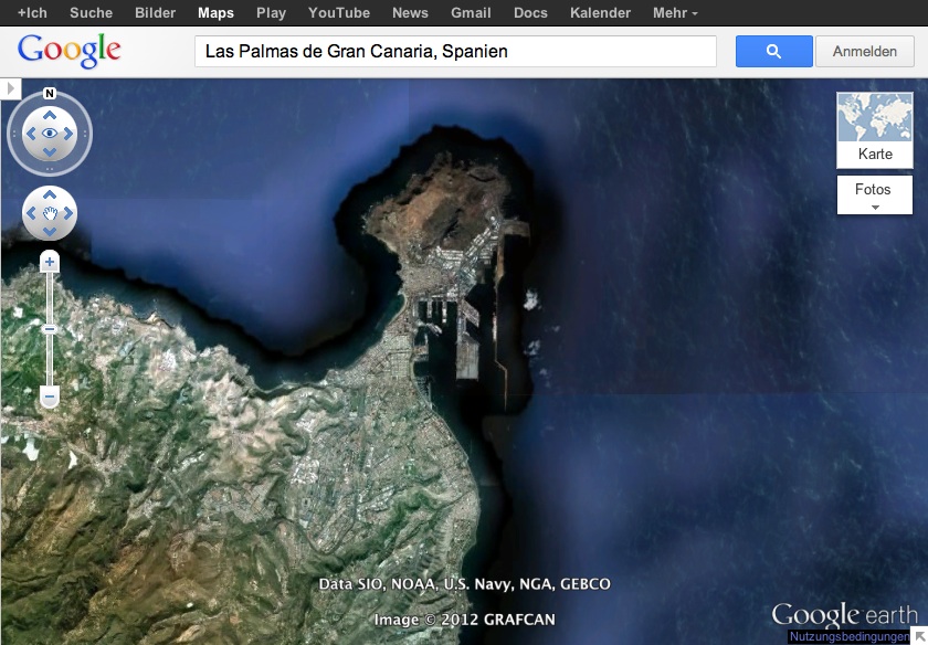 Jetzt möchte ich jedoch auf die Nutzungsbedingungen der Google Maps hinweisen, diese sind unten rechts im Browser einsehbar. Geben Sie nun Ihre Stadt oben in der Suchzeile ein (z.B. Las Palmas de Gran Canaria) und bestätigen die Eingabe. Die Stadt wird nun automatisch gesucht.