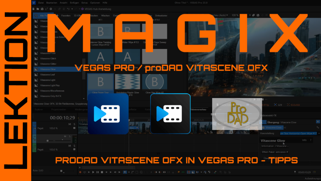 In diesem Workshop erfahren Sie, wie Sie proDAD Vitascene OFX in MAGIX Vegas Pro als vielseitiges Effekt- und Transition-Plugin einsetzen, um Ihre Videos professionell aufzuwerten. Schritt für Schritt lernen Sie, beeindruckende Effekte, kreative Farblooks und nahtlose Übergänge direkt in Vegas Pro anzuwenden.