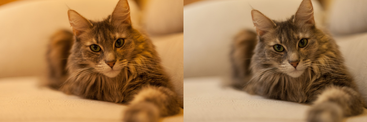 Wird z.B. die Voreinstellung Kunstlicht an der Kamera verwendet, dann wirken die Farben kälter (siehe Bild 2 mit der Katze) aber neutraler.