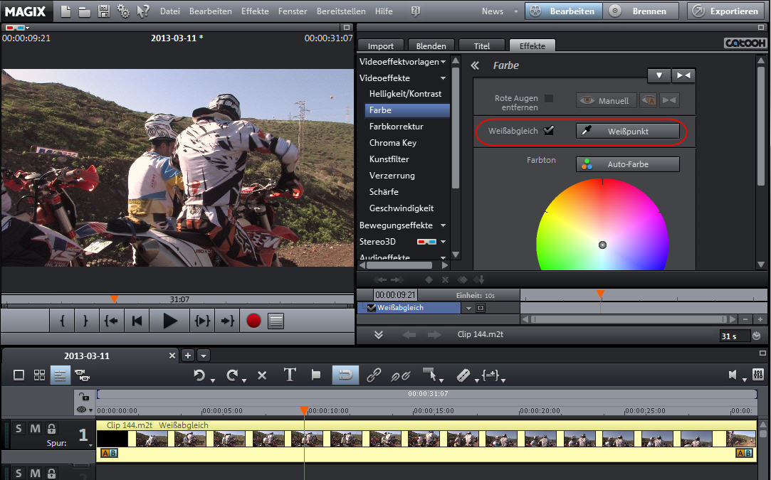 Auch im Videobearbeitungsprogramm MAGIX Video deluxe 2013 kann nachträglich ein Weißabgleich im bereits gefilmten Material durchgeführt werden.